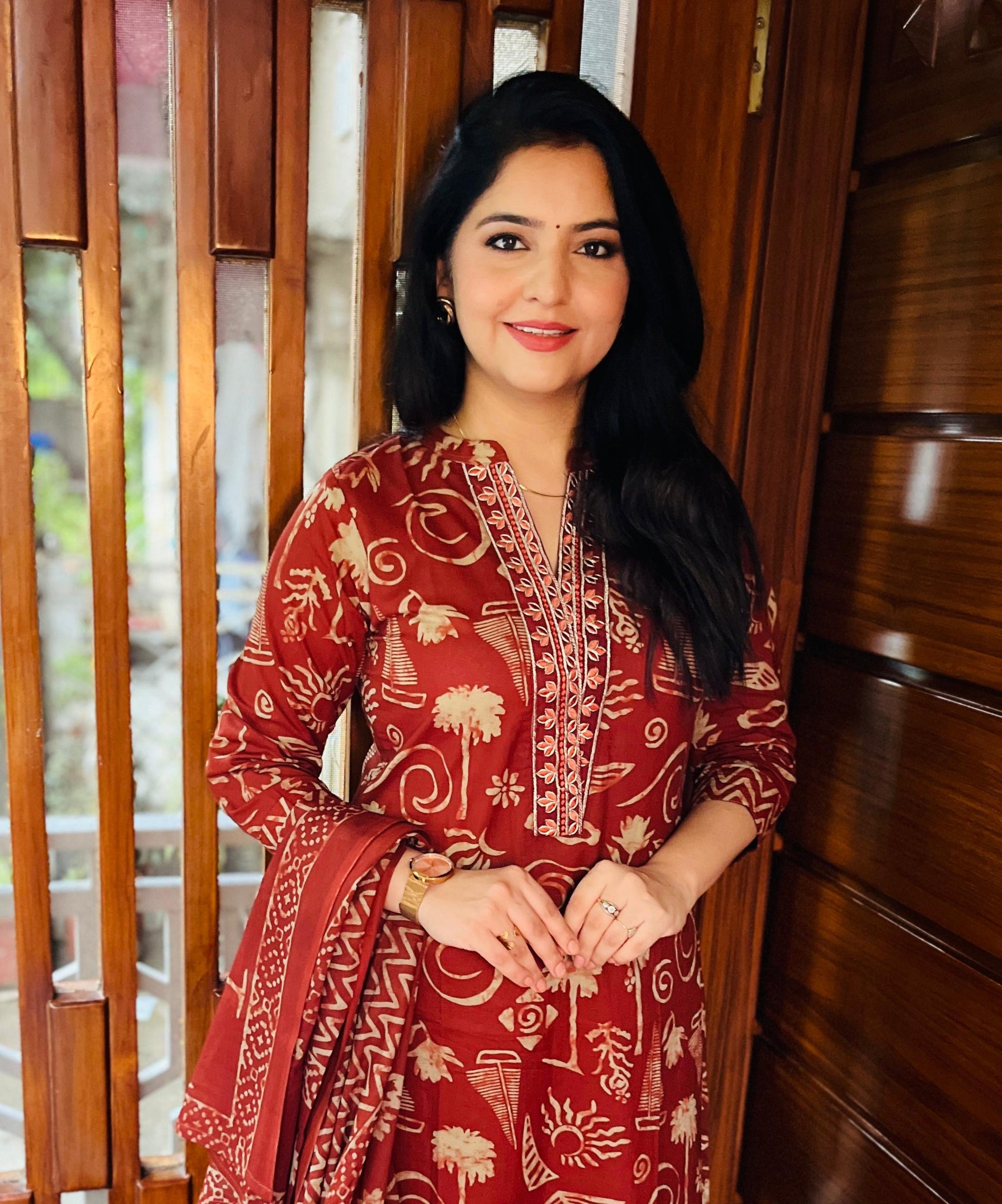 Cotton suit with neck embroidery work n pant work