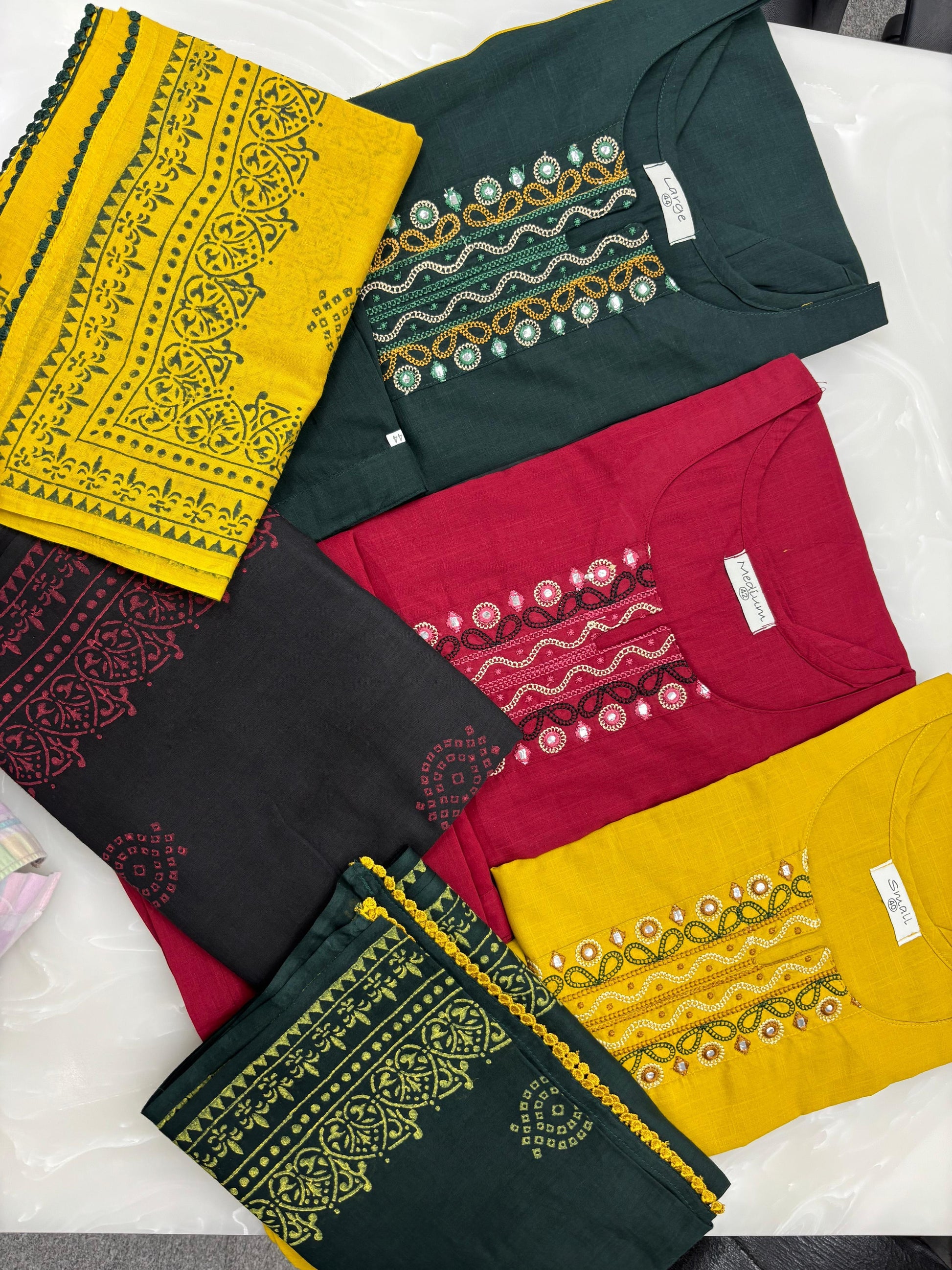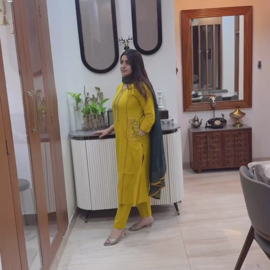 with embroidery work over neck n pockets