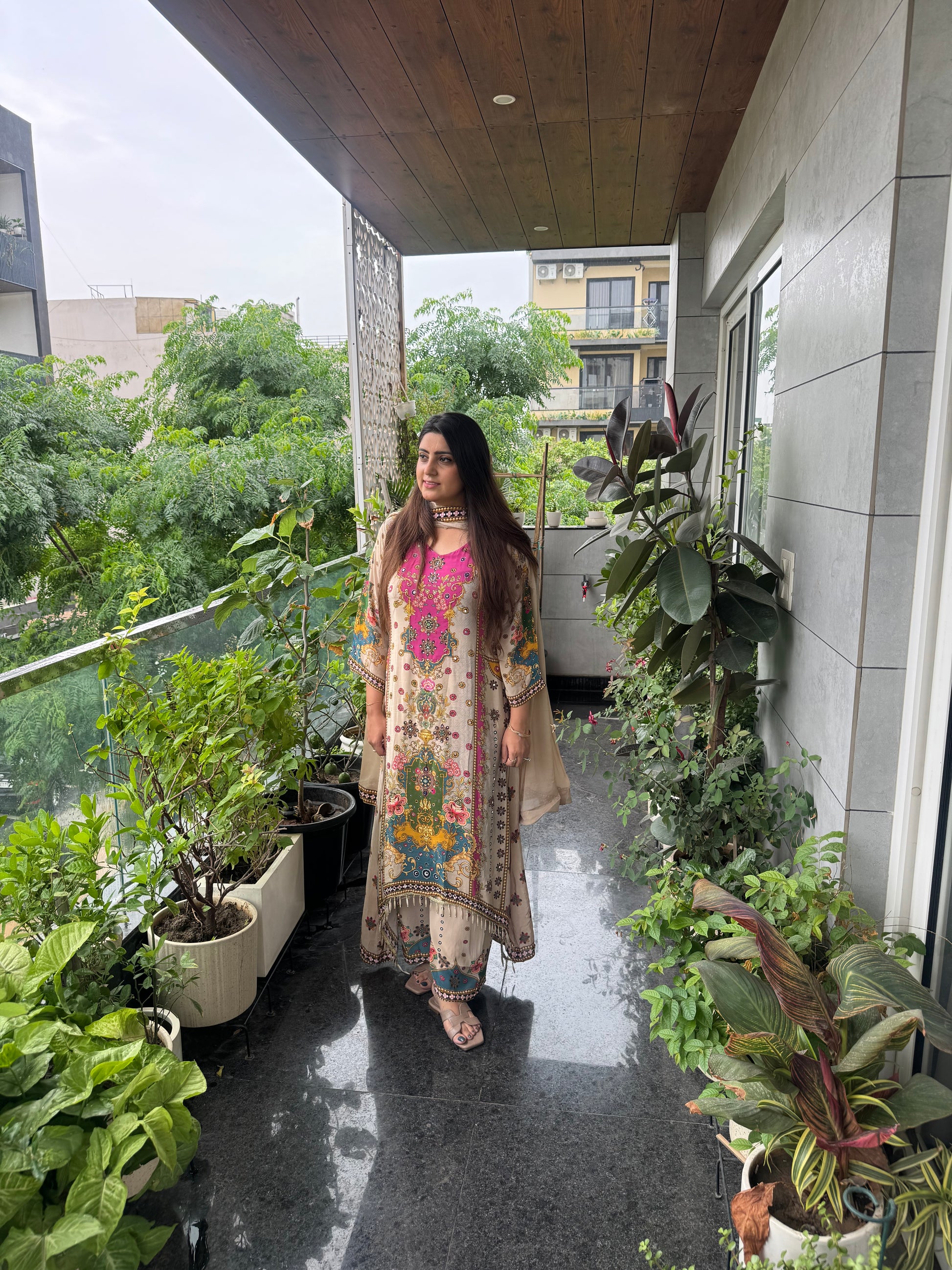 Beautiful crepe suit with complete hand work