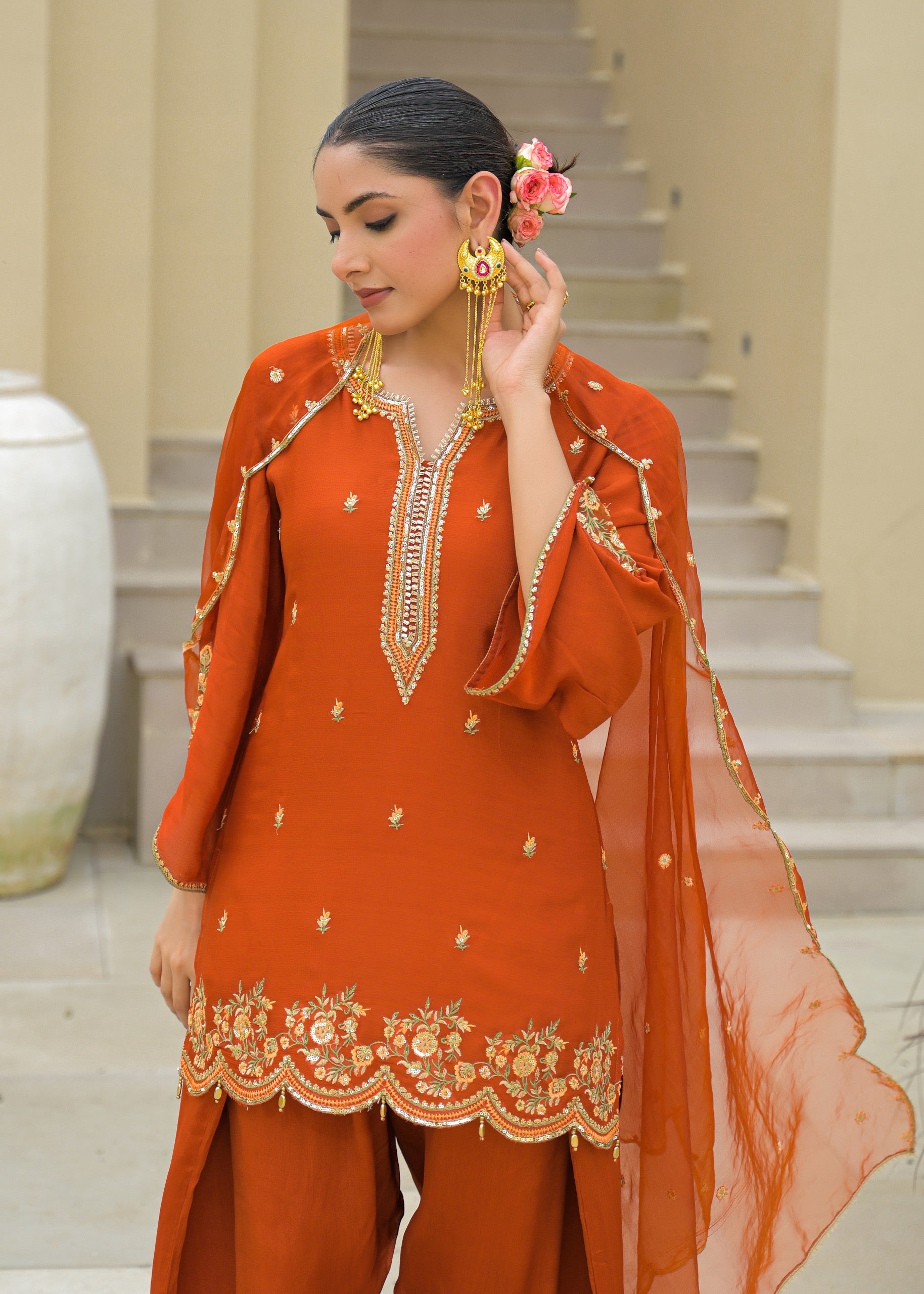 Chinon fabric with embroidery work