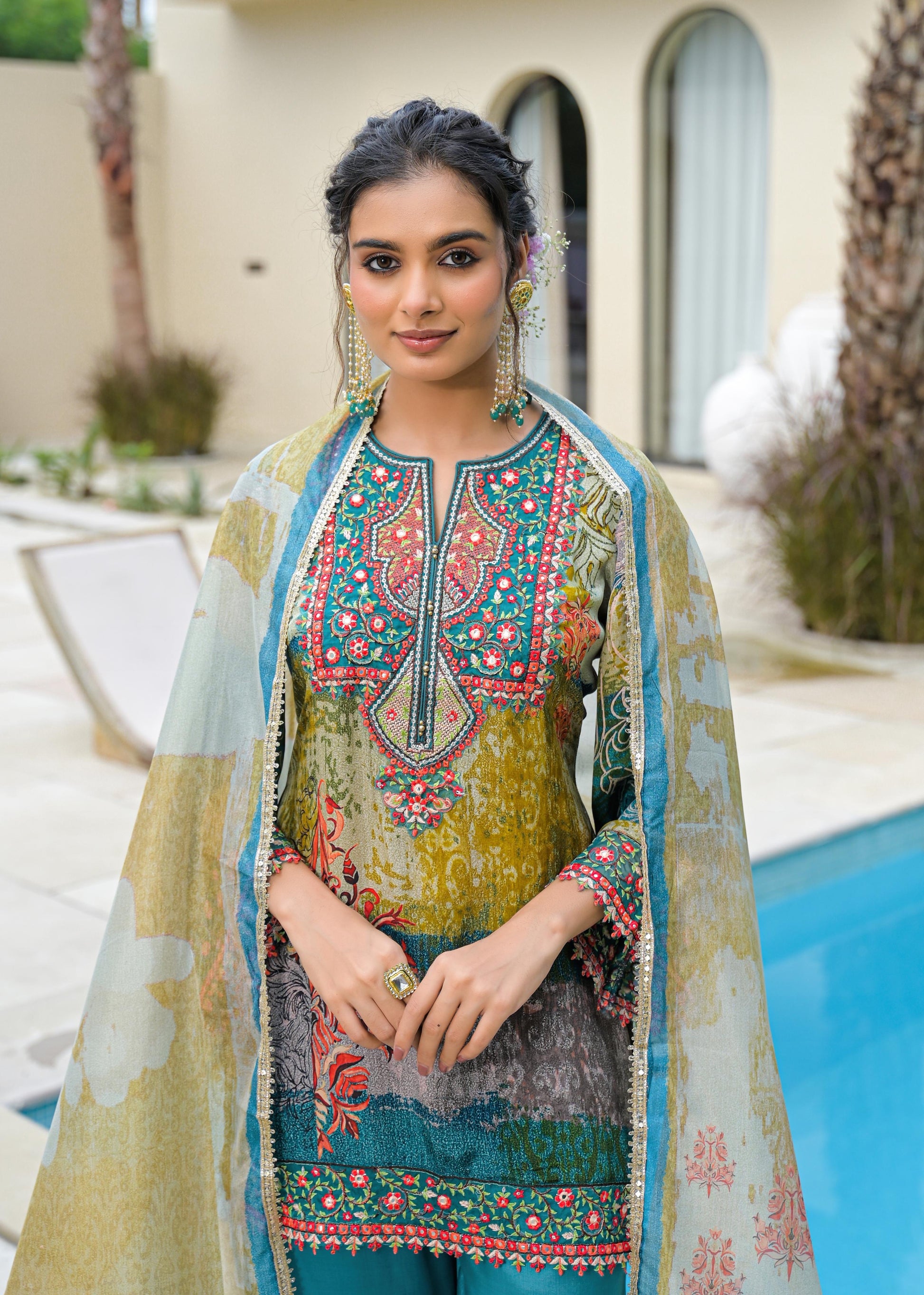 Style collection in Farsi salwar crepe fabric detailing with embroidery work